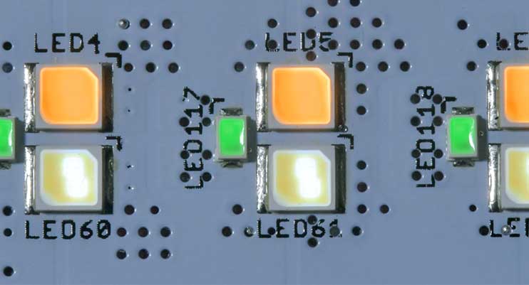 Color Rendering Index (CRI): A natural consequence of PERFEKTLIGHT™ technology is improved CRI. Shown in the CRI graph, PERFEKTLIGHT improved CRI of the Nichia Optisolis LEDs from 95 to as high as 98; making it a great choice for color critical applications.