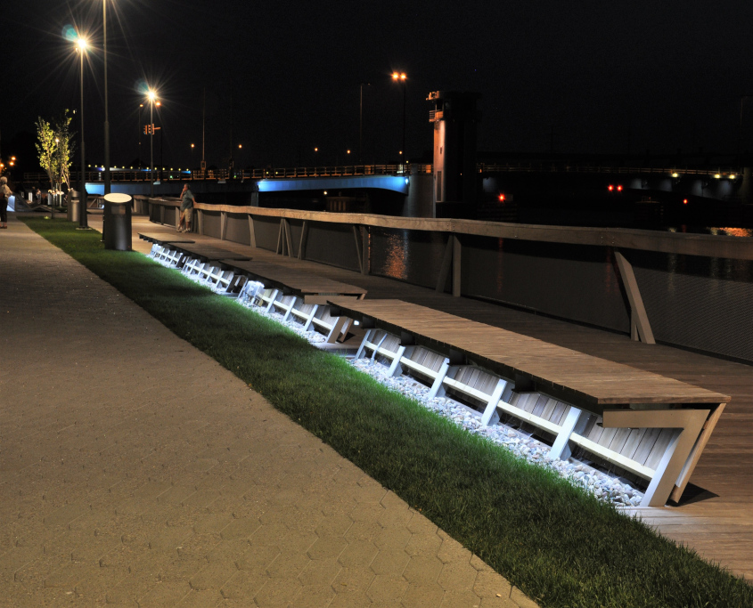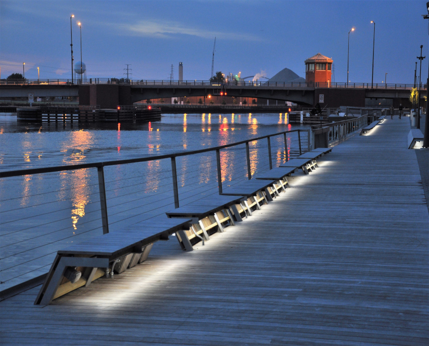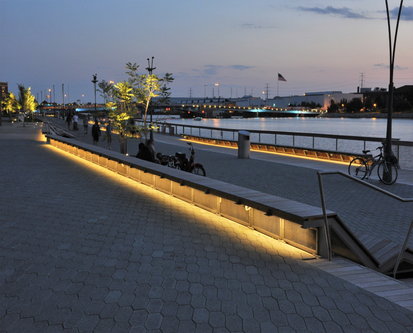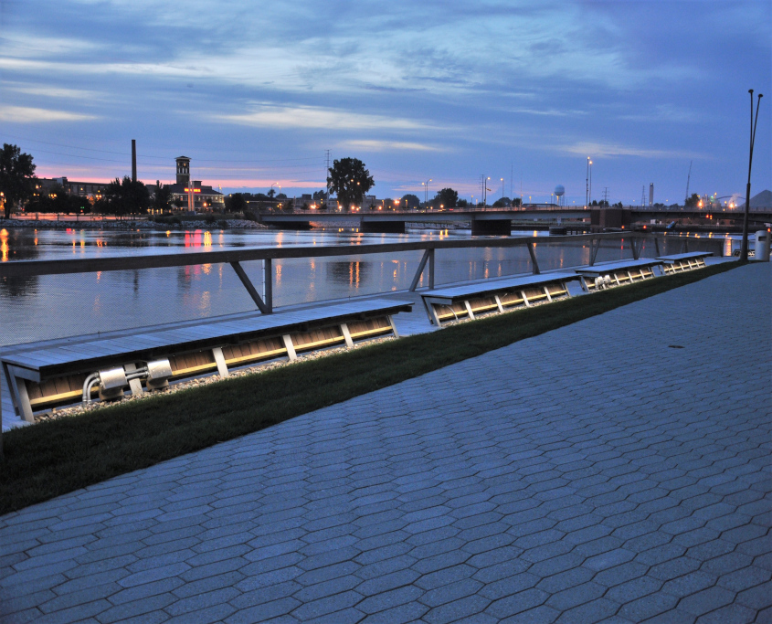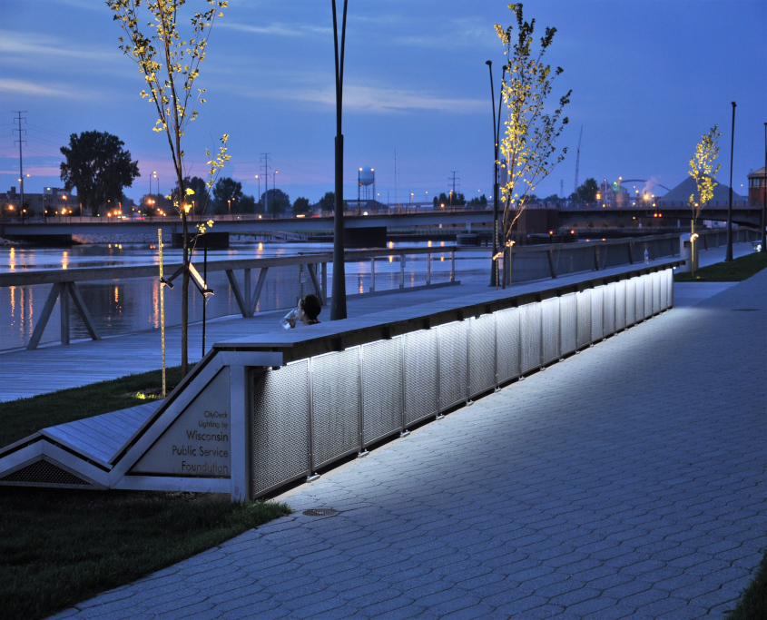 The City Deck is a riverfront promenade along the Fox River in downtown Green Bay, Wisconsin. Legacy Series RIA fixtures were used in both warm and cool CCTs, to provide lighting for this waterfront renovation project. Prolume fixtures, combined with DMX controllers, allow a full range of white color temperature tuning.